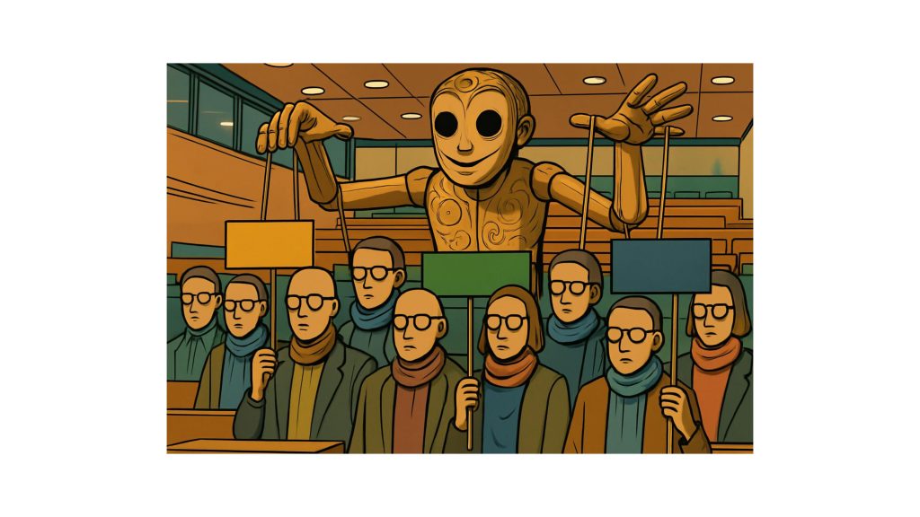 Mit einem literarischen Kunstgriff verdeutlicht Rust diese Problematik. Er greift auf Heinrich von Kleists „Über das Marionettentheater“ zurück, jene philosophische Parabel über Anmut und Bewusstsein. Wie die Figur bei Kleist, die versucht, eine natürliche Bewegung nachzuahmen und dabei gerade ihre Anmut verliert, so agiert der neue Spießer: Er imitiert kritisches Denken, ohne es zu verkörpern. Er spielt Aufgeklärtheit, ohne aufgeklärt zu sein. Das Ergebnis ist eine bizarre Mischung aus Selbstgewissheit und intellektueller Leere.